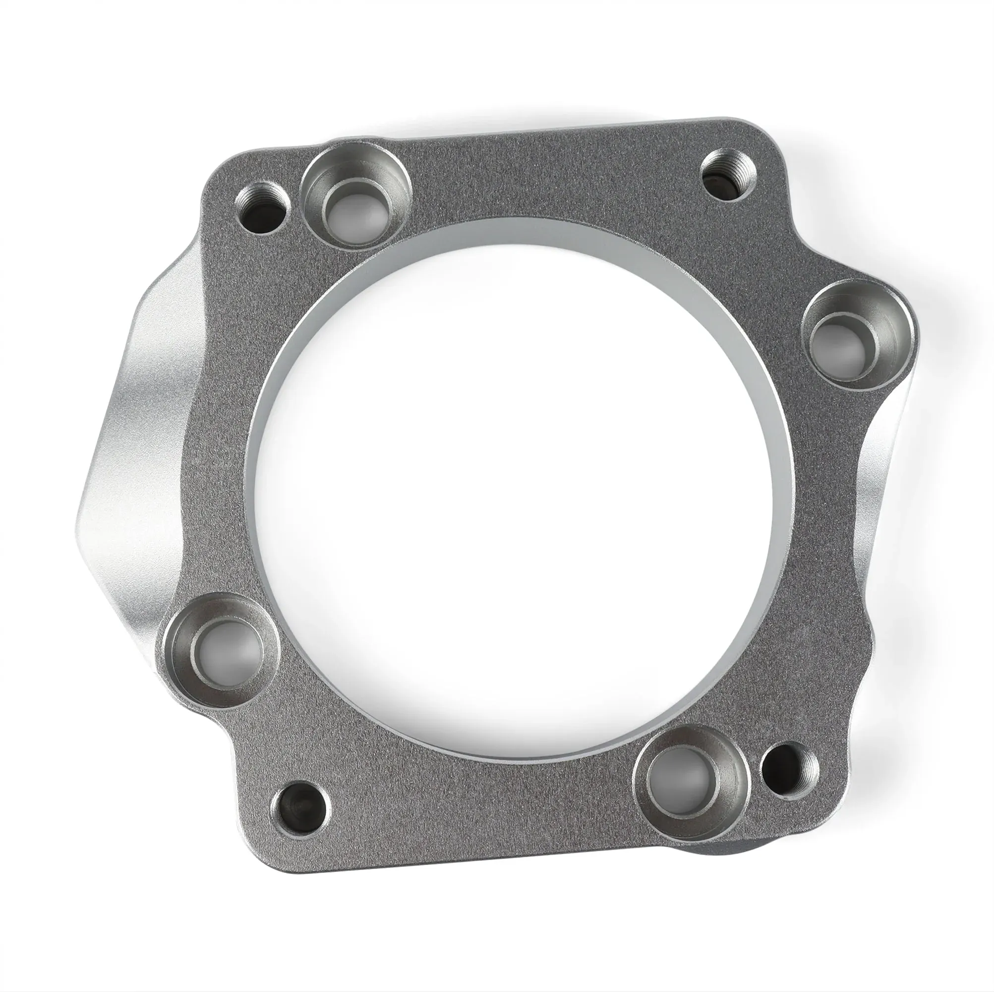 The Hybrid Racing PRB to ZDX throttle body adapter allows you to bolt a throttle body from an Acura ZDX engine onto an intake manifold with a “PRB” style flange. The popular large plenum Skunk2 street intake manifolds are great for power but have a drive-by-cable bolt pattern, making them difficult to use on a newer generation platform. This adapter allows users to bolt on the largest OEM drive-by-wire throttle body onto one of those intake manifolds without any modifications. This is a suitable part for the 06-11 Civic Si or 12-15 Civic Si using the larger Skunk2 style street intake manifold. The kit has everything you need to install in less than 30 minutes. The adapter has an inner diameter of 74mm.
